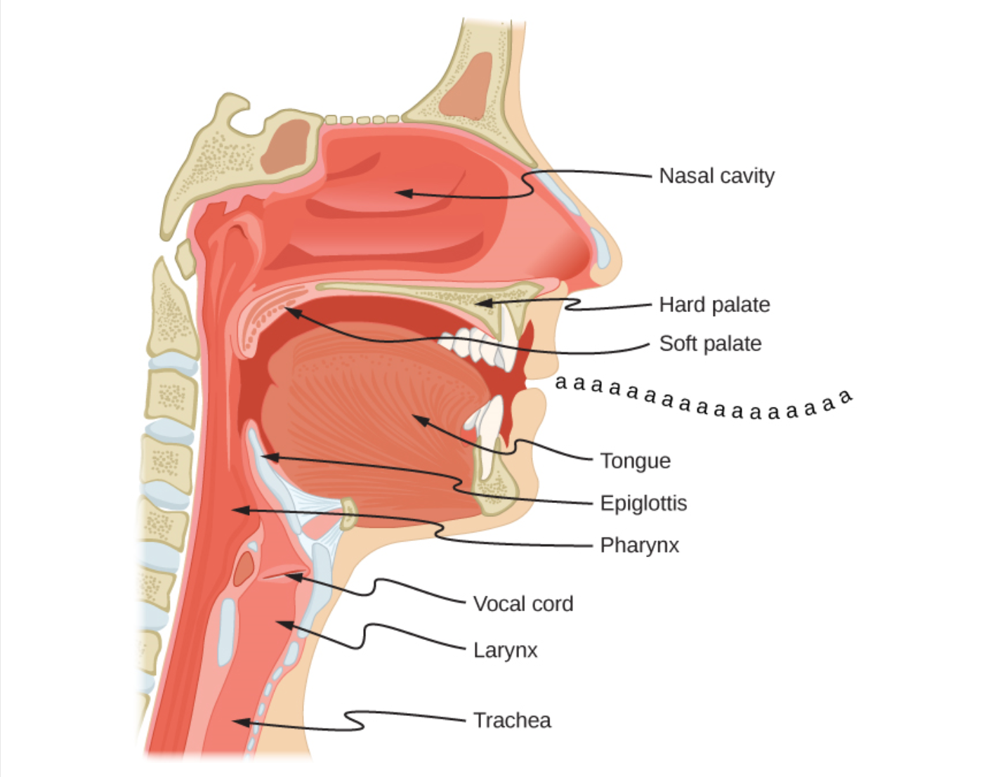 Figure 14.4 The vocal organs, shown in side view. (Figure from OpenStax University Physics, CC BY 4.0)