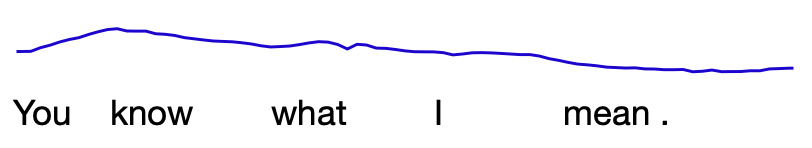 而若句末 F0 下降(称为终结降调(final fall)),则表示陈述语气: