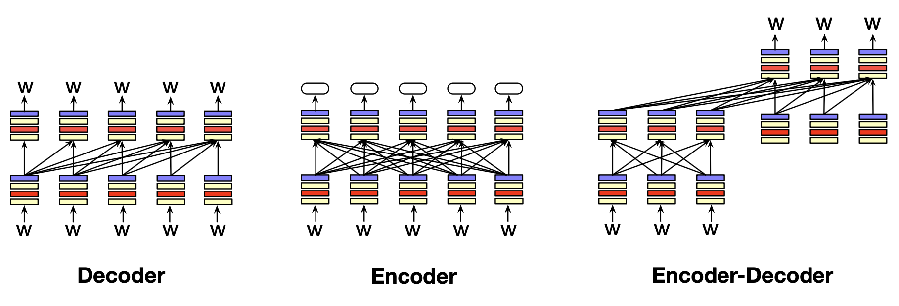 我们在上文描述的那种从左到右(或称自回归)的语言模型架构,也就是本章将要定义的架构,实际上只是三种常见语言模型架构之一。