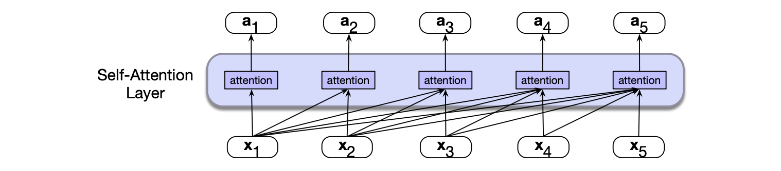 在本章使用的因果型(从左到右)注意力中,“其他输入”仅指左侧的词元。